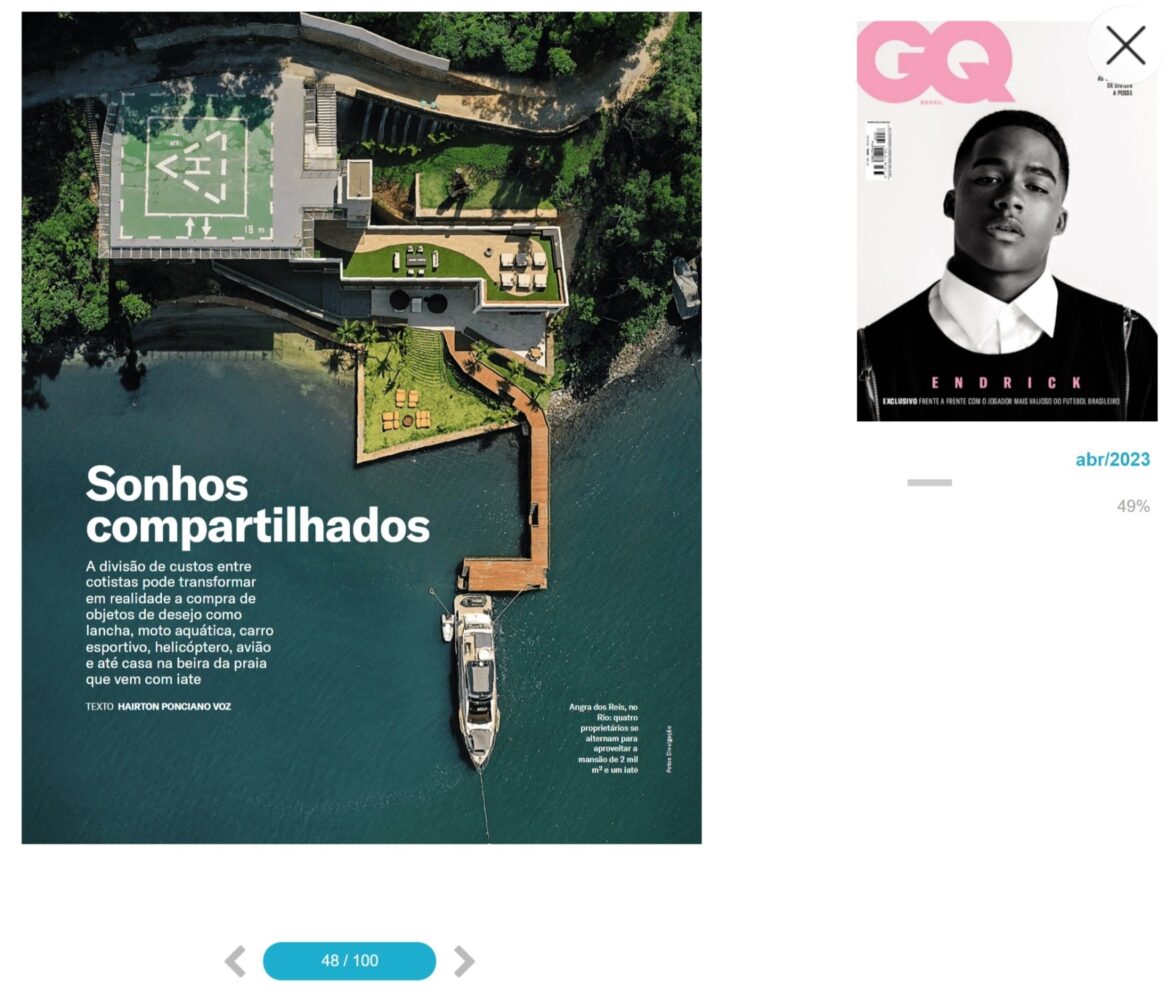 Hugo 4Boss foi destaque na matéria “Sonhos Compartilhados”, da revista GQ Lifestyle, edição de Abril de 2023, a convite da Prime You empresa que atua com compartilhamento de aeronaves, embarcações, imóveis e automóveis.