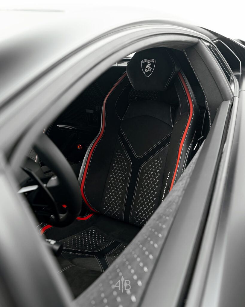 O interior une exclusividade, elegância e tecnologia de ponta. Ao entrar, a primeira coisa que chama atenção é o cockpit, com bancos anatomicamente projetados para acomodar perfeitamente os seus ocupantes. Materiais nobres como a fibra de carbono e alcantara deixam o ambiente leve e sofisticado. O volante possui botões essenciais que permitem o acesso rápido sem tirar as mãos da direção.